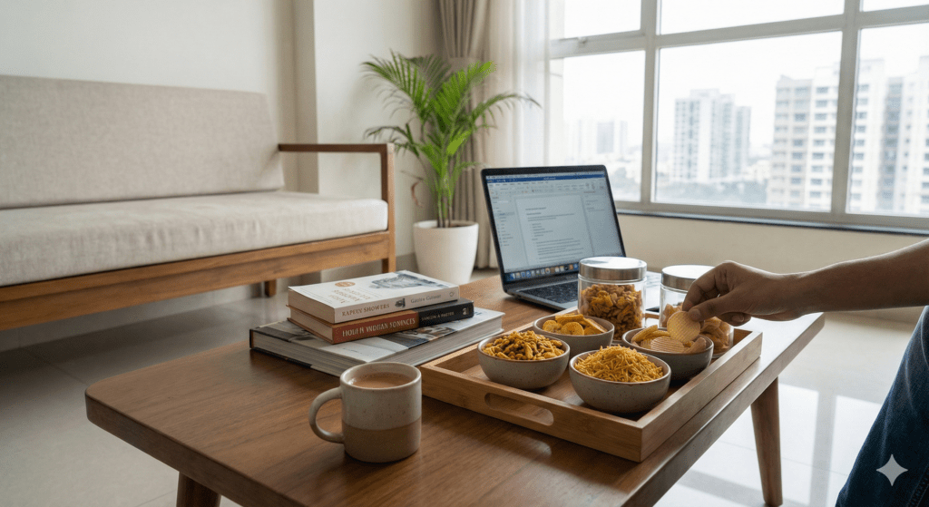 The Indian snacks comeback is closely linked to evening tea culture. A cup of chai paired with namkeen, wafers, or light snacks continues to be a daily ritual. This habit keeps traditional snacks relevant even in urban, fast-moving lives.