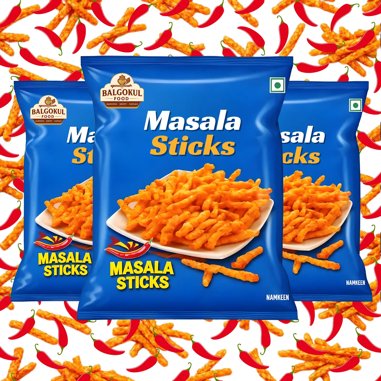 Experience the bold and crunchy taste of BalGokul Foods Masala Sticks, a classic Indian namkeen made with a perfect blend of rice meal, corn meal, gram meal, and aromatic spices. These crispy sticks deliver a spicy, savory punch in every bite, making them an ideal snack for tea-time, travel, or anytime munching.