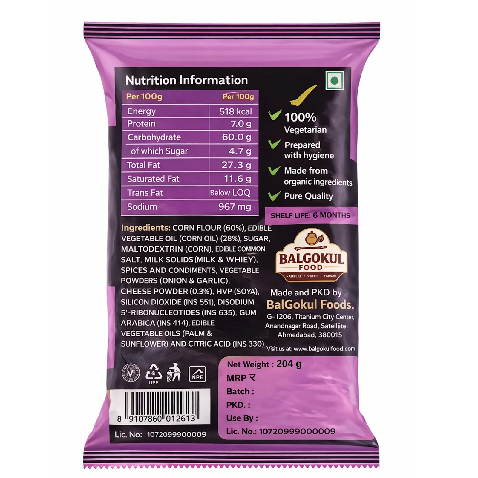 Prepared under hygienic conditions and 100% vegetarian, this product reflects BalGokul Foods’ commitment to quality, consistency, and trusted taste. Perfect for parties, movie nights, travel snacking, or anytime cravings, Cornigo Cheesy Nachos are a delicious treat for cheese lovers of all ages.